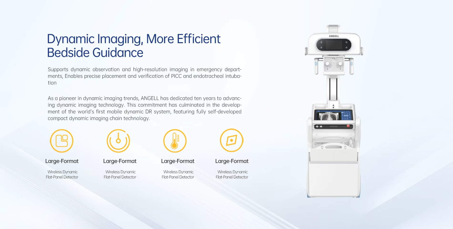 Будучи пионером в области динамической визуализации, компания ANGELL посвятила десять лет развитию этой технологии. Результатом этой работы стало создание первой в мире мобильной системы динамической DR, оснащенной полностью самостоятельно разработанной компактной технологией цепочки динамической визуализации.